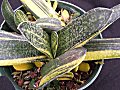 striped with golden yellow, medium size grower, leaves about 7" long in