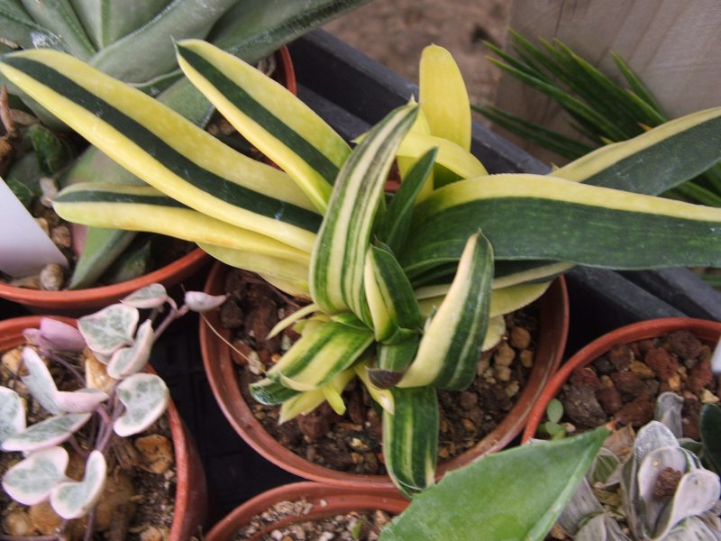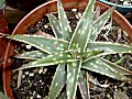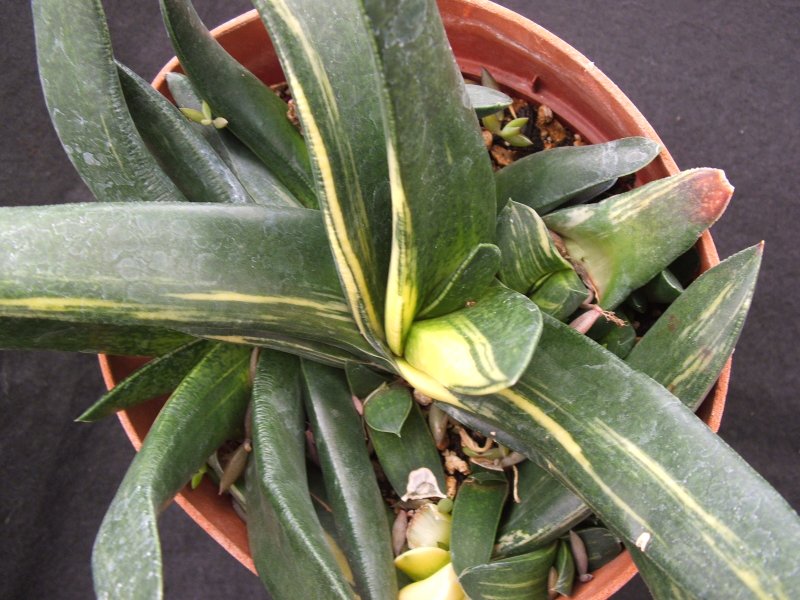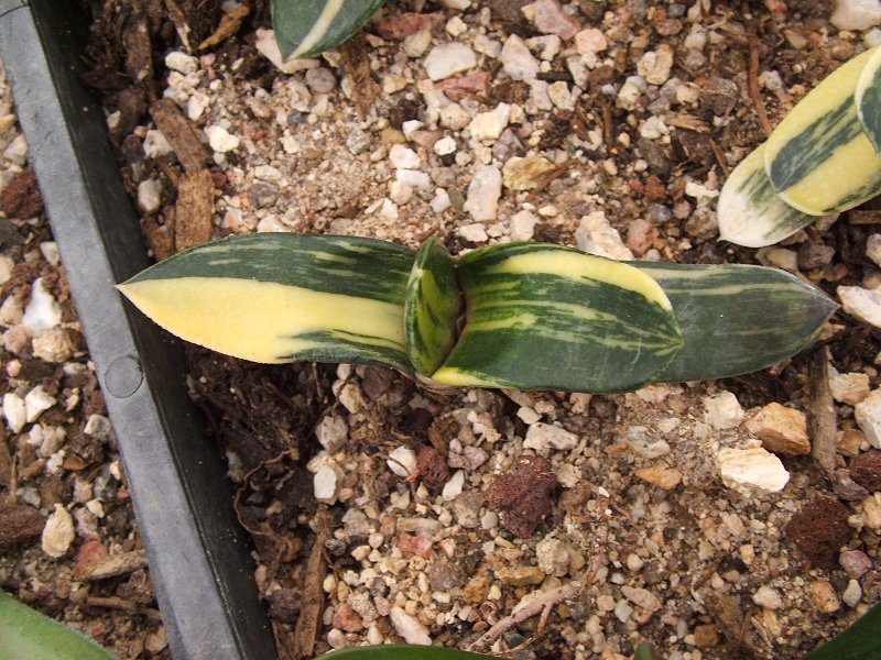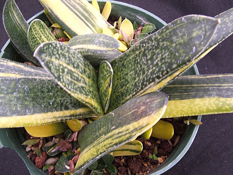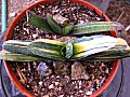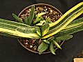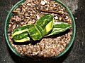 green leaves in semi rosette, striped with creamy white, very slow, and