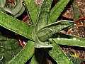 6" diameter, very slow, thick fleshy angular leaves, heavily striped