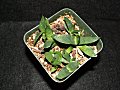 leaves in short semi rosette, spotted with white, slow, 2-3" |