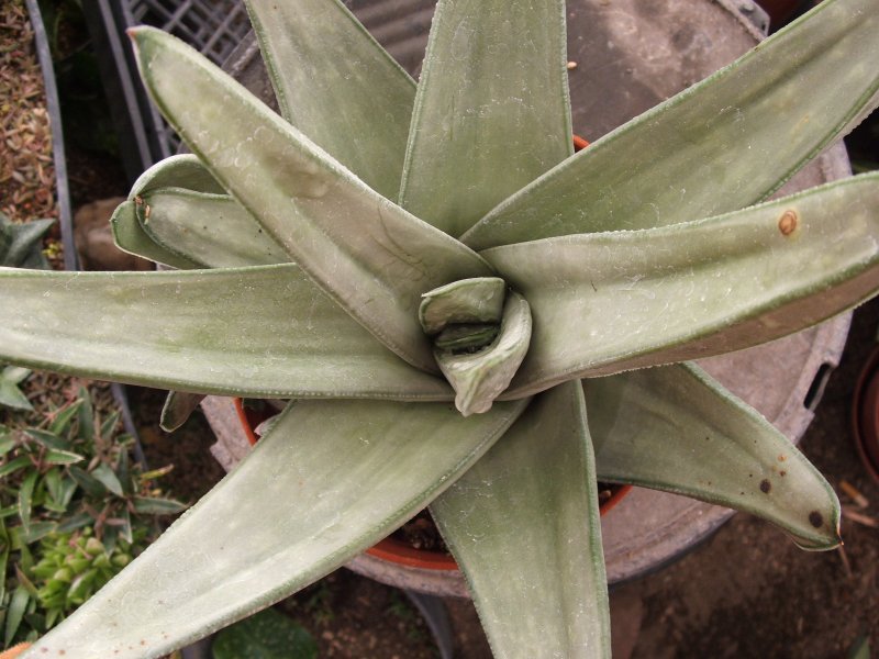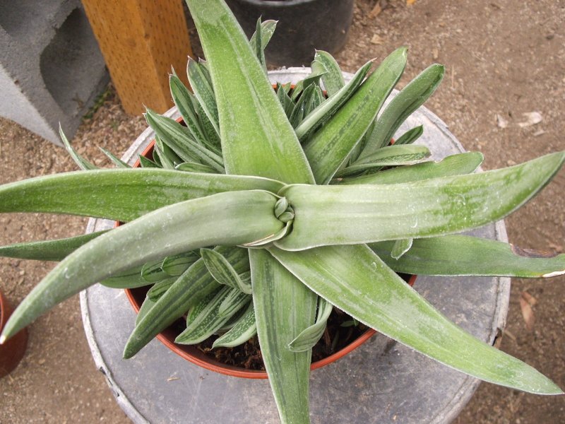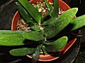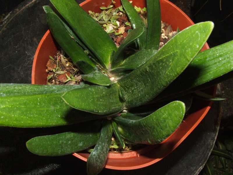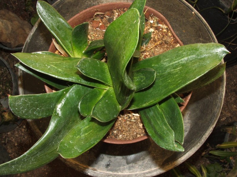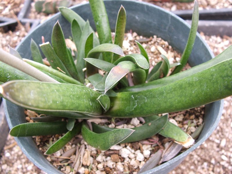 very unusual, 12" long leaves in upright semi rosette, leaves are very