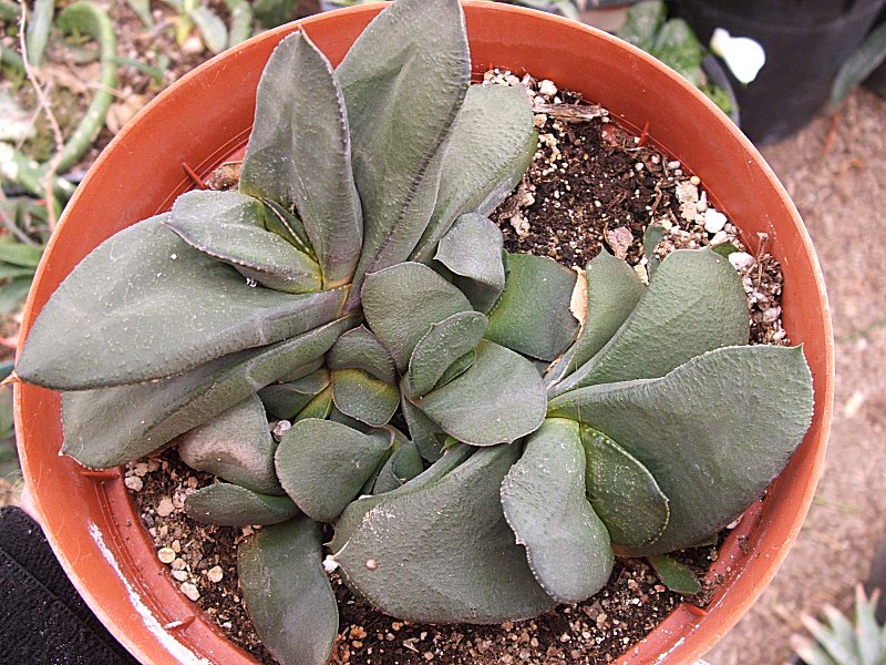 while, forms medium sized rosette of very thick wide fleshy leaves,